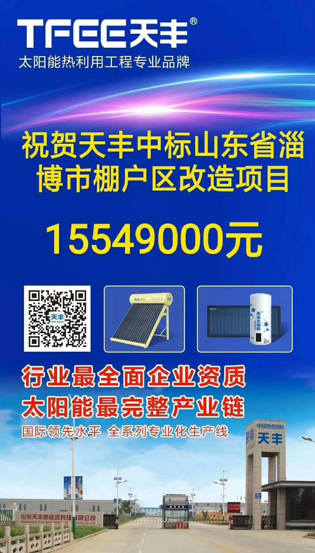 在太陽能熱水器行業的大河中,天豐人始終保持著“咬定青山不放松”的執著,胸懷著“越是艱險越向前”的膽魄。值此國慶佳節來臨之際,工程部傳來捷報:天豐太陽能中標淄博經開棚戶區1500余萬元的改造項目。(慶祝的表情)(捷報照片)
